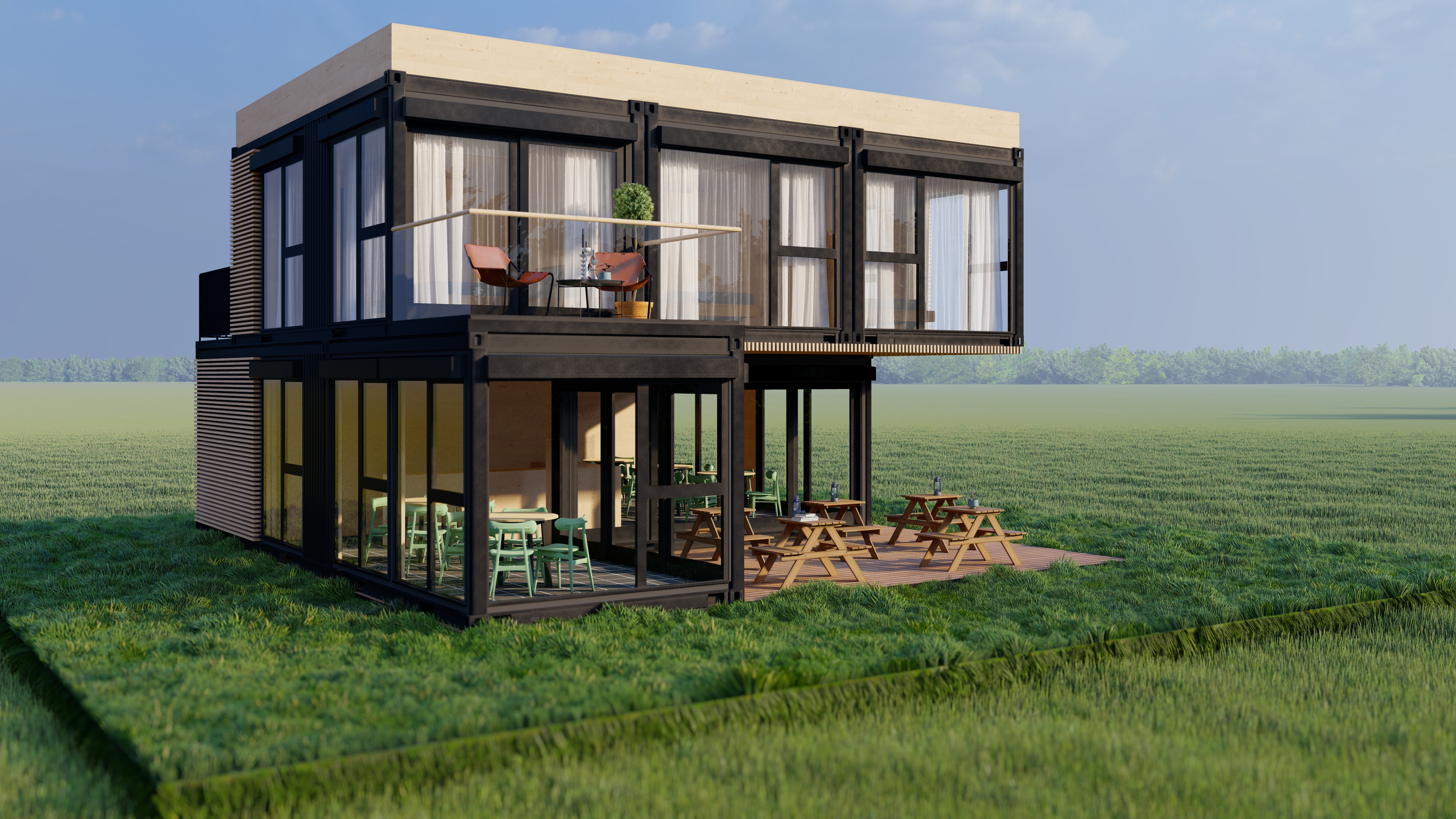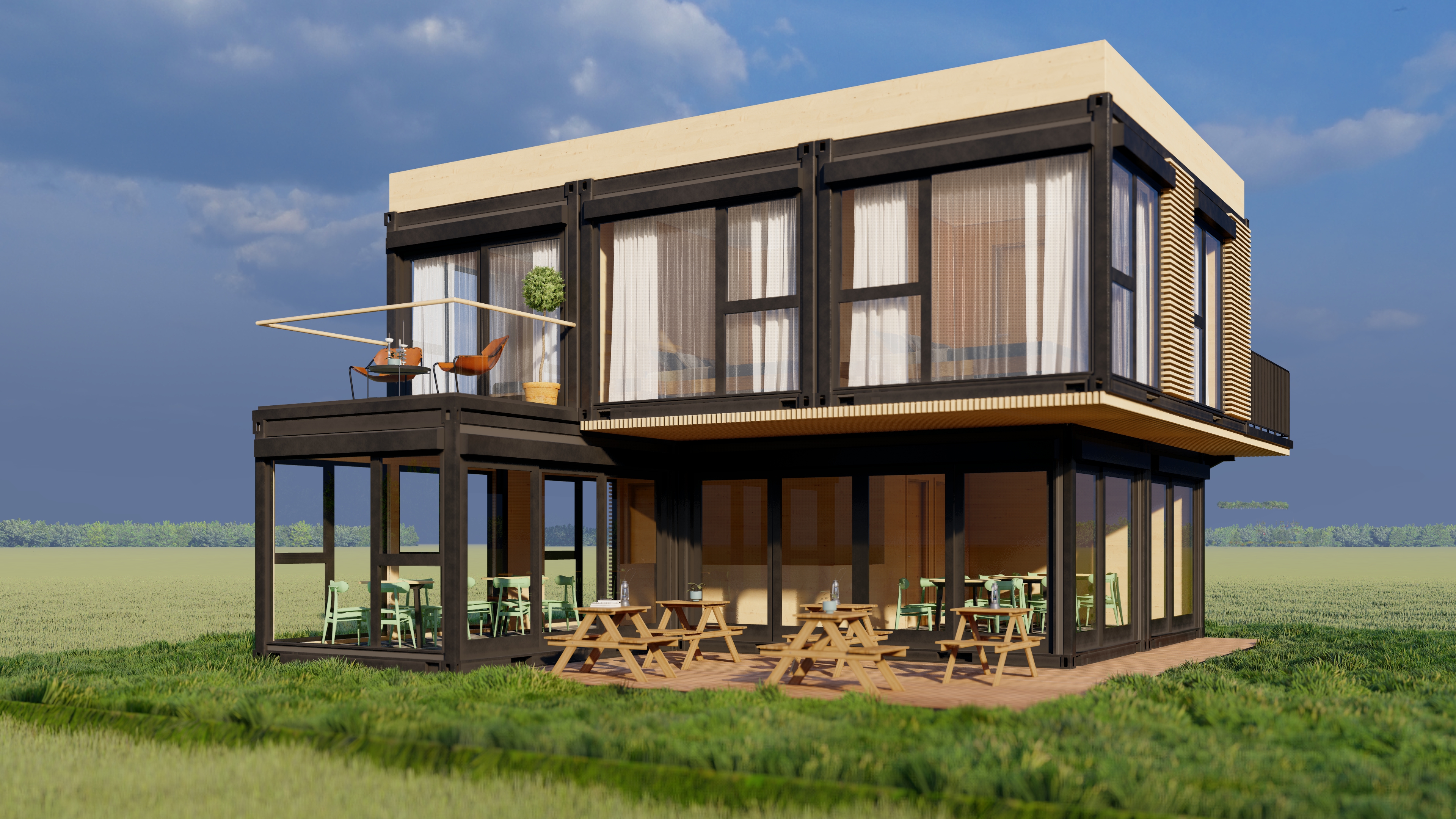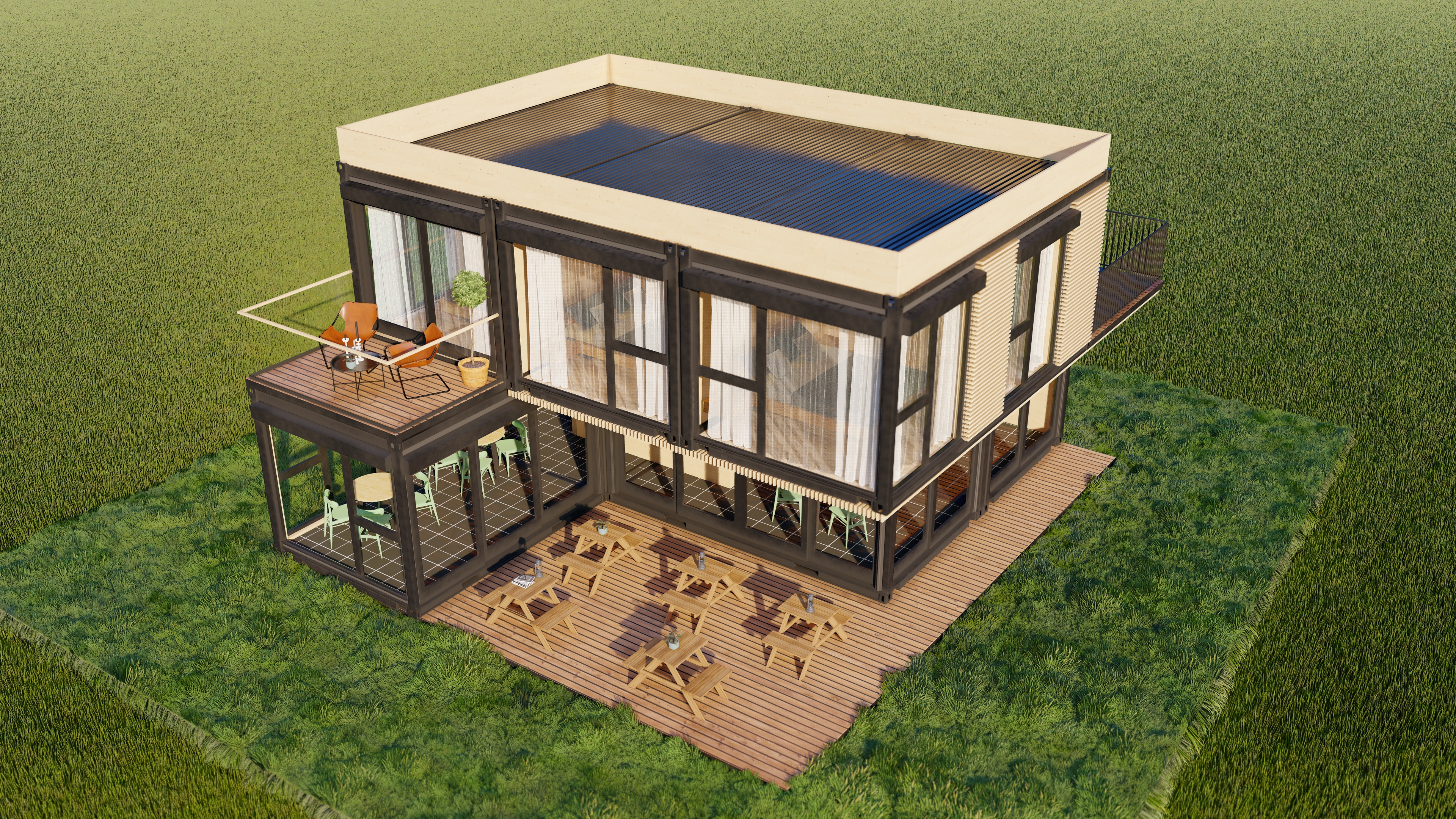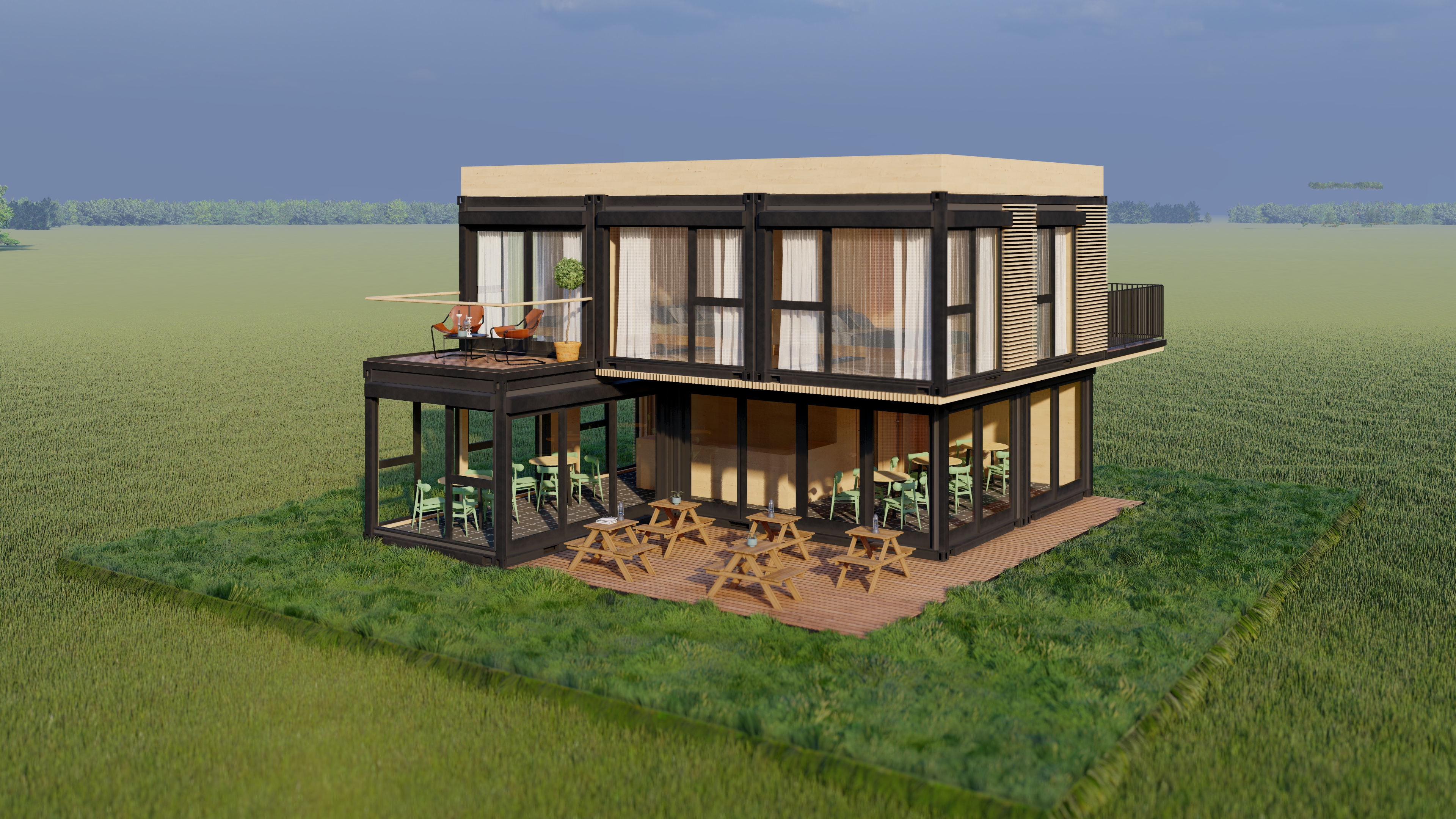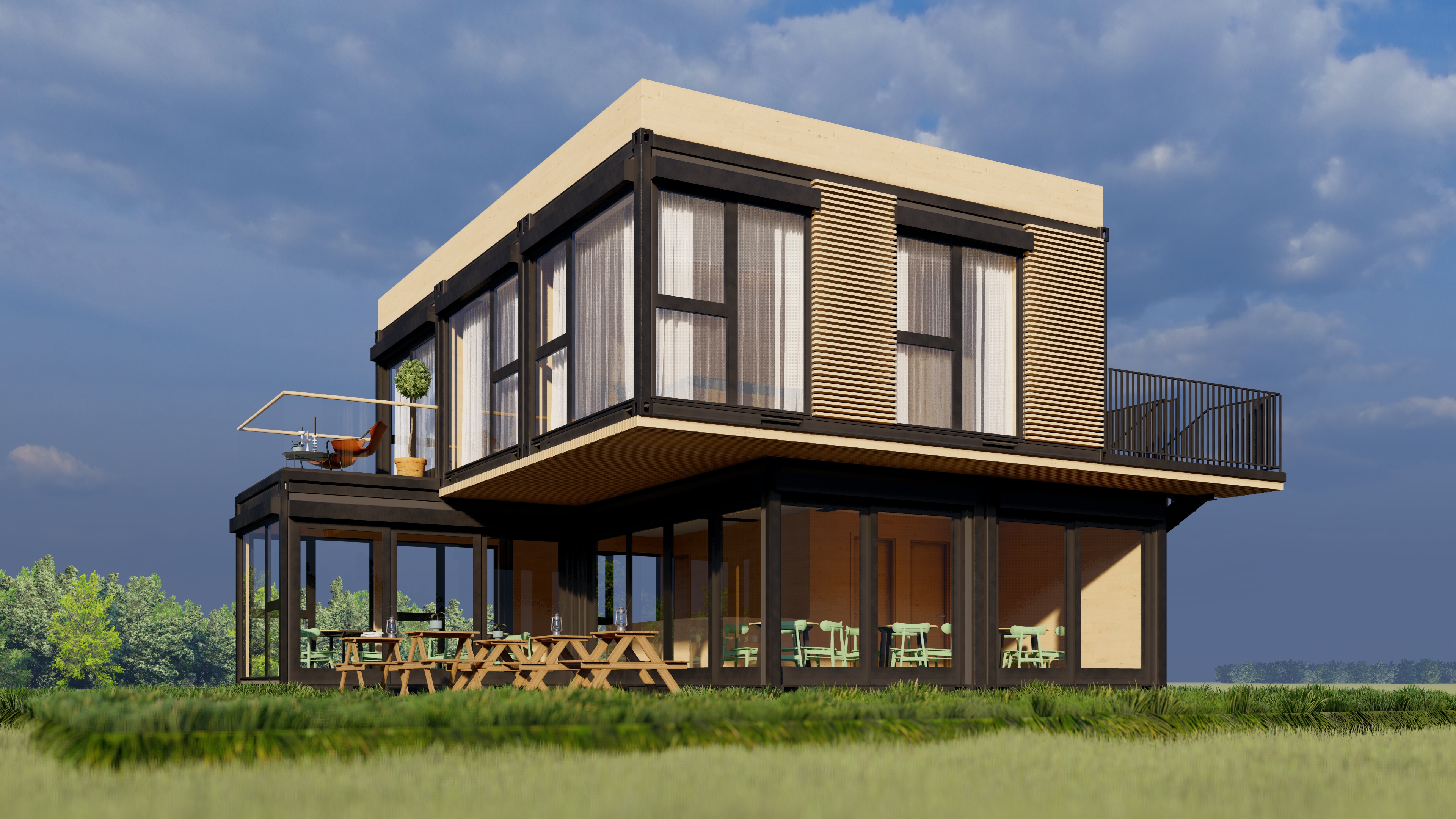 Concept casa container. Constructie realizata integral din containere maritime.